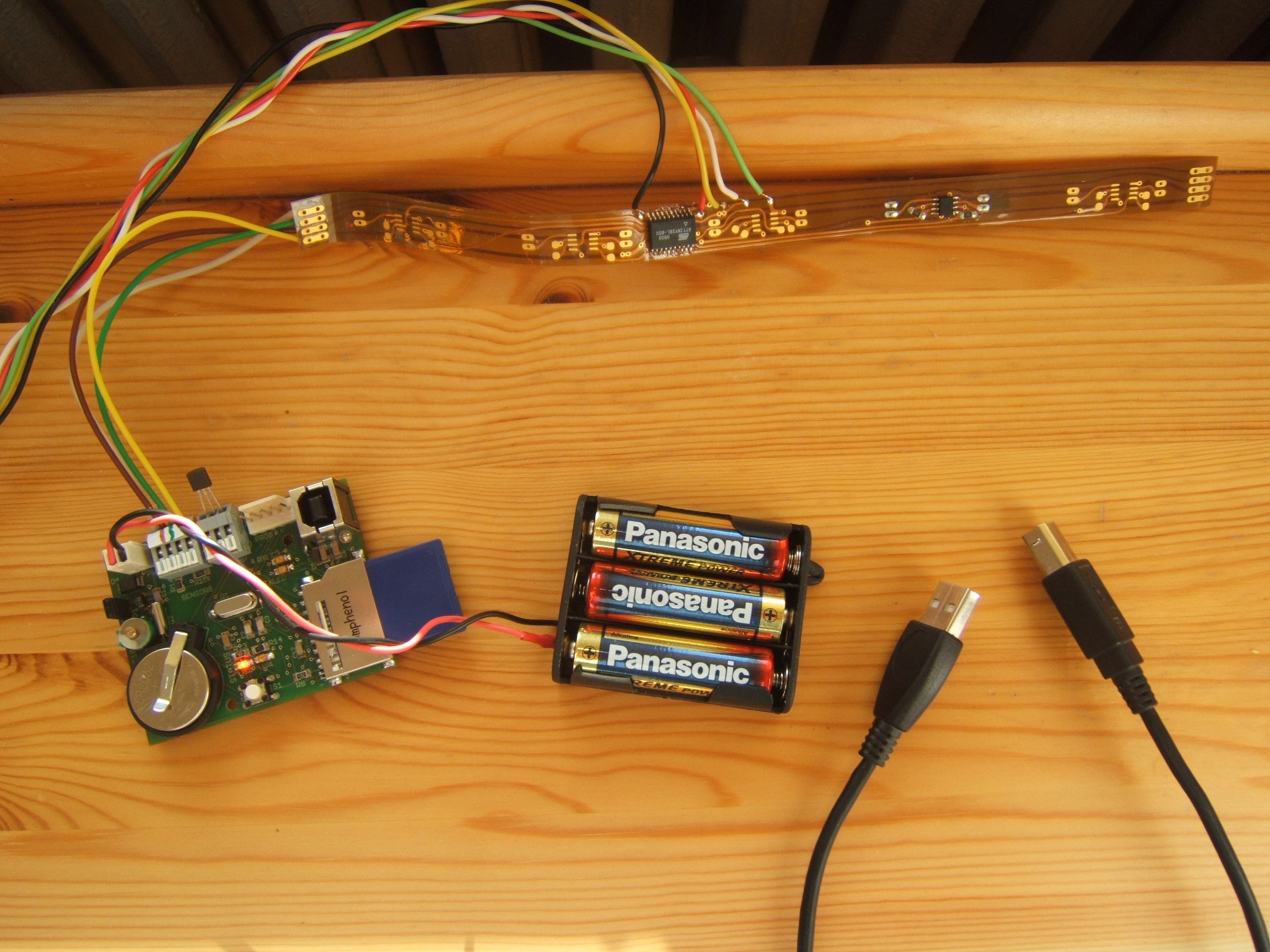 Optical sensors and the supporting electronics are soldered to a flexible printed circuit board. Thanks to this design it is possible to fold the long sensor tube for transportation or storage.